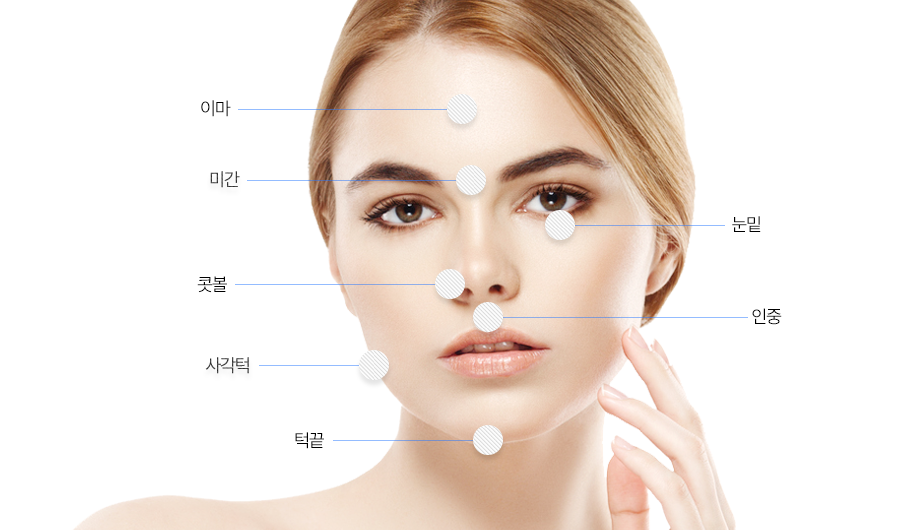 미소를 짓거나 웃을 때 혹은 찡그릴 때와 같이 얼굴 표정에 의해 생기는 표정근의 동작성 주름 치료에 효과적입니다. 주로 이마, 미간, 눈가에 생긴 주름을 펴는데 가장 효과적으로 이용되며 그 외에 코와 입 주위의 주름 뺨의 주름, 목주름을 펴는데도 이용될 수 있습니다.